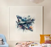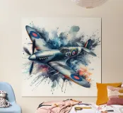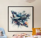 Spitfire bei voller Geschwindigkeit gezeichnet in Aquarell mit Spritzern Poster