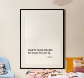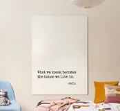Was wir sprechen, wird zu dem Haus, in dem wir leben Zitat Poster mit Holzrahmen