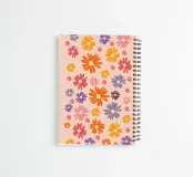 Ein verspieltes Blumenmuster, das wie ein visueller Spaziergang durch ein Retro-Gartenfestival wirkt: Die stilisierten Blüten – in Orange, Pink, Lila, Rot und Gelb – tanzen frei. Jede Blume hat eine einfache, margeritenartige Form mit langen, strahlenförmigen Blütenblättern, die aus einem zentralen Punkt hervorgehen. Die Anordnung ist bewusst unregelmäßig – wie ein Streumuster aus Freude, Sommer und Nostalgie.