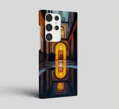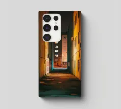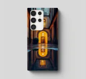 Diese Fotografie fängt den nächtlichen Zauber Barcelonas ein, wo die Reflexionen der goldenen Lichter eine stille Gasse nach dem Regen beleuchten. Die warme und friedliche Atmosphäre lädt dazu ein, dem Alltag zu entfliehen und in die Intimität dieser bezaubernden Stadt zu reisen.
