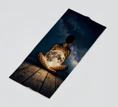 Erleben Sie die Magie des Reisens und des Nachthimmels mit diesem stimmungsvollen Kunstwerk, das eine Hand zeigt, die sanft ein Flugzeugfenster mit Blick auf leuchtende Wüstendünen berührt. Eine Mondsichel leuchtet vor einem tiefblauen Himmel voller Sterne und schafft eine heitere Mischung aus Fernweh und Staunen. Der warme, goldene Sand steht in schönem Kontrast zu den kühlen Nachttönen und fängt das Gefühl von Einsamkeit, Reflexion und Träumen über der Welt ein. Perfekt für Reiseliebhaber, Minimalisten und Fans von filmischen, verträumten Fensterbildern.