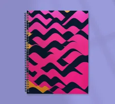 Das Bild zeigt dynamische Wellen und Muster in den Farben Pink, Lila und Schwarz