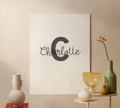 Bringen Sie Eleganz in Ihren Raum mit dem personalisierten Monogramm Custom Name Design. Dieses einzigartige Stück eignet sich perfekt zum Verschenken oder als Dekoration für Ihr Zuhause. Es zeigt Ihren gewählten Namen mit einem klassischen Monogramm und verleiht Wänden, Büros oder Schlafzimmern einen Hauch von Raffinesse.