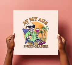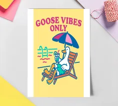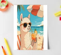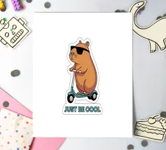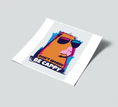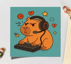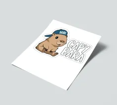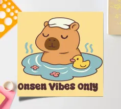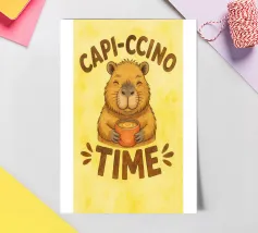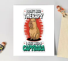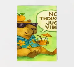 Ein fröhliches Wasserschwein mit Sonnenbrille sitzt auf einer Bank und genießt eine Wassermelone mit tropischem Flair. Der Text darüber lautet "I'M NOT LAZY" und darunter "I'M JUST ON CAPYBARA TIME".