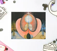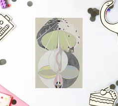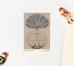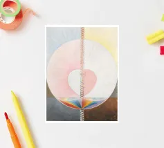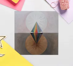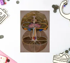 Tauchen Sie ein in Hilma af Klints vielschichtigen "Baum der Erkenntnis Nr. 5". Dieses fesselnde abstrakte Werk, eine meisterhafte Mischung aus Aquarell und Graphit, stellt spirituelle und evolutionäre Konzepte durch ineinander verwobene organische und geometrische Formen dar. Klints Vorreiterrolle in der abstrakten Kunst zeigt sich in der durchdachten Komposition, die Zusammenhänge und verborgene Wahrheiten hervorhebt. Unser hochwertiges Digitalposter mit einer Auflösung von 7000x5000 Pixeln und 300 dpi gibt die subtilen Texturen und tiefgründigen Details dieses einflussreichen Meisterwerks makellos wieder und macht es zu einer einzigartigen Ergänzung für jede Kunstsammlung.