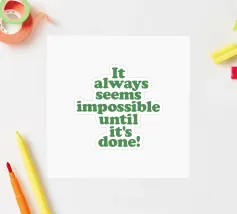 Bringen Sie Inspiration in Ihren Raum mit diesem Nelson Mandela Kunstdruck, der den aufmunternden Satz "It Always Seems Impossible Until Its's Done" in charmanten weißen handgezeichneten Buchstaben auf einem beruhigenden blauen Hintergrund zeigt. Dieses einzigartige Design ist eine Mischung aus Hoffnung und Ermutigung und damit ein durchdachtes Geschenk für Geburtstage, Abschlussfeiern oder Neuanfänge. Die verspielte, unschuldige Schrift und der auffallend blaue Farbton machen es zu einem herausragenden Stück für jedes Zuhause, Büro oder Arbeitszimmer, ideal für jeden, der täglich nach Positivität und einer Erinnerung an Durchhaltevermögen sucht.