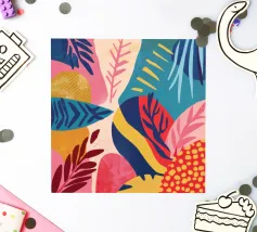Ein Raster aus verschiedenen abstrakten und geometrischen Mustern in einer Palette von Rosa, Rot und Petrol schafft ein modernes, künstlerisches und dekoratives Patchwork-Design.