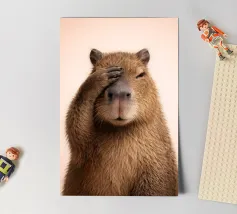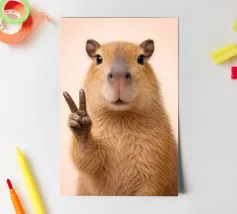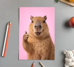 Eine niedliche Wasserschwein-Illustration, umgeben von einem motivierenden Text. Die Worte ermutigen zur Individualität mit einer humorvollen Wendung, die den Charme von Wasserschweinen hervorhebt.