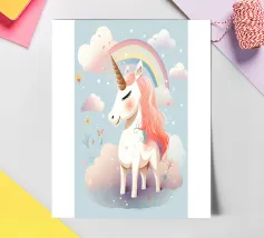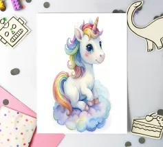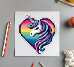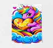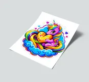 Dieses bezaubernde Einhorn, das in neonbunten Regenbogenfarben leuchtet, umklammert ein Sternenherz und schwebt auf einer flauschigen Wolke voller wunderlicher Freude. Mit seinen großen, funkelnden Augen und einer Mähne, die in einem Spektrum heller Farben schillert, wirkt dieses Design wie eine magische Flucht in ein Land, in dem Träume wahr werden. Es ist perfekt geeignet, um jedem Raum oder Gegenstand, den es schmückt, einen Hauch von spielerischer Energie zu verleihen. Egal, ob du jung oder junggeblieben bist, dieses fröhliche Einhorn erinnert dich daran, deine innere Magie anzunehmen und immer mit Liebe zu führen.