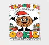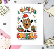 Ein fröhlicher Keks mit Weihnachtsmannmütze ist von festlichen Dekorationen, Büchern und heißem Kakao umgeben. Die Worte "I teach the smartest cookies #tistheseason" fügen eine spielerische, weihnachtliche Botschaft hinzu.