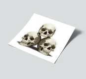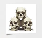 Pyramide der Schädel (Stil Lowpoly), inspiriert von einem Gemälde von Paul Cezanne (1901) Die Schädelpyramide zeigt vier pyramidenförmig gestapelte menschliche Schädel. Die in hellem Licht vor dunklem Hintergrund gemalte Schädelpyramide ist eine Besonderheit im Werk des Künstlers, denn "in keinem anderen Gemälde hat Cézanne seine Objekte so nah an den Betrachter gebracht".