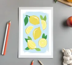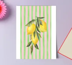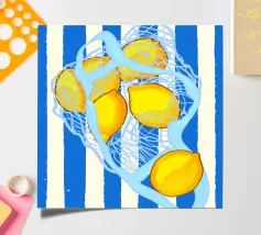 Zitrone drucken, Blaue Streifen drucken, Zitrone dekorieren