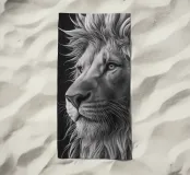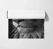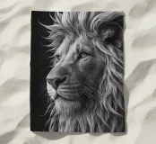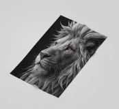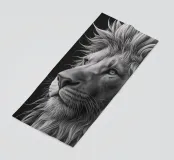 Dieses eindrucksvolle Schwarz-Weiß-Porträt eines majestätischen Löwen zeigt die beeindruckende Mähne und die kraftvolle Schnautze in detailreicher Nahaufnahme. Die minimalistische Komposition und die feine Fellstruktur unterstreichen die natürliche Schönheit und Stärke dieses wildlebenden Tieres.