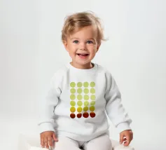 Unsere Baby Sweatshirts bestehen aus 85 % Bio-Baumwolle und 15 % recyceltem Polyester.