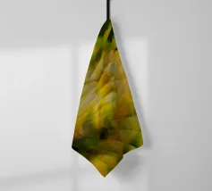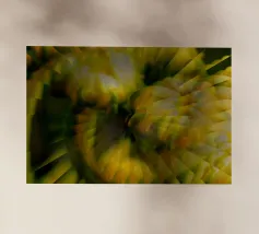 Ein Bild von einem abstrakten, dynamischen Muster in den Farben gelb, grün und weiß.