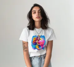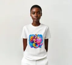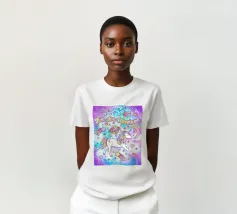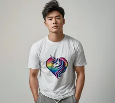 Dieses bezaubernde Einhorn, das in neonbunten Regenbogenfarben leuchtet, umklammert ein Sternenherz und schwebt auf einer flauschigen Wolke voller wunderlicher Freude. Mit seinen großen, funkelnden Augen und einer Mähne, die in einem Spektrum heller Farben schillert, wirkt dieses Design wie eine magische Flucht in ein Land, in dem Träume wahr werden. Es ist perfekt geeignet, um jedem Raum oder Gegenstand, den es schmückt, einen Hauch von spielerischer Energie zu verleihen. Egal, ob du jung oder junggeblieben bist, dieses fröhliche Einhorn erinnert dich daran, deine innere Magie anzunehmen und immer mit Liebe zu führen.