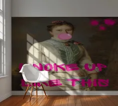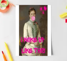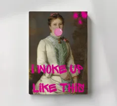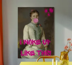 Mit "I Woke Up Like This", einem witzigen Pop-Art-Druck, der auf humorvolle Weise klassische Porträts mit einer beliebten modernen Redewendung verbindet, können Sie sich mühelos in Szene setzen. Dieses fesselnde Kunstwerk zeigt eine königliche historische Figur, die mit zarten Blumen geschmückt ist und spielerisch eine glänzende rosa Bubblegum-Blase pustet. Der fettgedruckte, pinkfarbene Text "I WOKE UP LIKE THIS" überlagert das Bild und ist eine sympathische und witzige Aussage über natürliche Schönheit (oder einen lässigen Morgen!). Rosa Farbspritzer sorgen für einen Hauch von kantigem Flair. Es ist eine perfekte Mischung aus zeitlosem Charme und modernem Humor, ideal, um Persönlichkeit und eine unbeschwerte Atmosphäre zu schaffen.