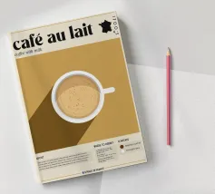 Kaffeetasse café au lait karte von frankreich 1800er Text kaffeebohnen illustration kaffee mit milch gebrühter kaffee Gedämpfte Milch Infografik-Layout Beschreibung des Getränks Kaffeegetränk französischer Kaffee Kartensymbol historische referenz cremige Kaffeeoberfläche getränk inhalt Textblock brauner Hintergrund Heißes Getränk Informationskarte
