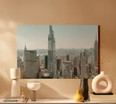 Erleben Sie mit dem Design Manhattan Skyline View eine atemberaubende Skyline direkt an Ihren Wänden. Das bezaubernde Panorama von Manhattan, einer Perle von New York, USA, entfaltet sich direkt vor Ihren Augen und bringt das Charisma der Stadt in Ihren Raum. Während sich die Stadt in den sanften Farben der abklingenden Dämmerung sonnt, spiegeln die schimmernden Lichter das pulsierende Leben wider und schaffen ein Ambiente urbaner Gelassenheit. Bestaunen Sie die ikonischen Wahrzeichen, die sich in das Stadtbild einfügen; Ihr Blick wandert nahtlos über den glitzernden East River hinaus bis ins Herz von Brooklyn. Entfliehen Sie dem Gewöhnlichen und verankern Sie Ihre Innenräume im