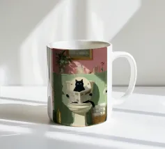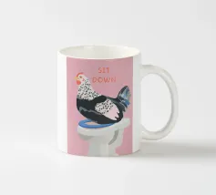 Ein humorvolles Badezimmer-Poster in sanften Pastellfarben mit dem fröhlichen Text „Setz dich“ lädt im Gäste-WC zum Schmunzeln ein. Mit minimalistischer Grafik und Toilettenpapier und handgezeichneten Elementen sorgt es für eine lustige Atmosphäre und eine klare Botschaft gegen das Stehpinkeln!