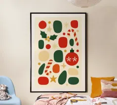 Ein sanftes, handgemaltes botanisches Muster mit winterlichen Tannenzweigen und zarten weißen Schneebeeren. Warme Beigetöne verschmelzen mit ausdrucksstarken malerischen Strichen zu einem ruhigen und natürlich eleganten saisonalen Design. Perfekt, um eine beruhigende Winterstimmung in jedes moderne Interieur zu bringen.