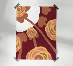 Eine Illustration mit einem Blattmuster in einem einfachen Stil, mit rosa, weißen und braunen Farben. Diese Illustration bietet einen frischen und modernen Look.