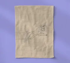 Das verspielte und selbstbewusste Wesen einer Katze, die sich mit dieser minimalistischen Strichzeichnung windet. Ein modernes abstraktes Kunstwerk, das Beweglichkeit, Stärke und die charismatische Natur von Katzen symbolisiert.