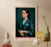Ein visionäres Porträt von Ada Lovelace – der ersten Programmiererin der Geschichte, neu interpretiert im futuristischen Cyberpunk-Stil. Tattoos, Tech-Gadgets und der binäre Code „0/1“ verbinden historische Genialität mit moderner Ästhetik. Für alle Fans von Female Empowerment, IT-Kultur und Digital Art. Perfekt als Poster für Arbeitszimmer, Galerien oder moderne Lernräume.