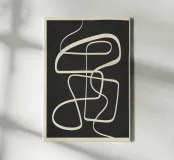 Modern Abstract Lines – Noir Leinwand mit Schattenfugenrahmen
