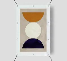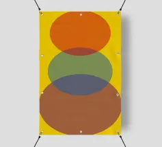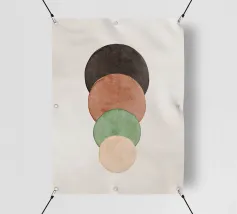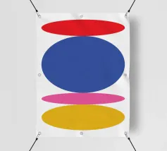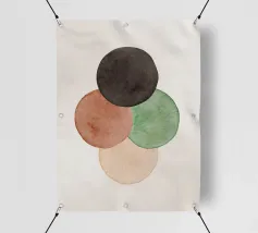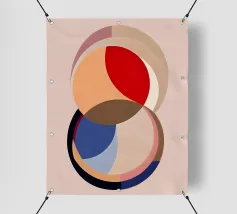 Drei Kreise, drei Farben, eine ruhige Balance: Dieses moderne Poster zeigt eine vertikale Komposition aus übereinanderliegenden, transparenten Farbflächen in Rot, Orange und Violett. Die sanften Überlappungen erzeugen Tiefe und Harmonie – ideal für moderne Interiors, kreative Arbeitsräume oder minimalistische Kunstwände mit Farbakzent.