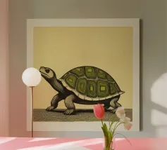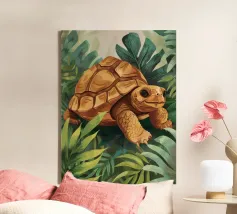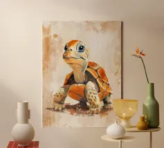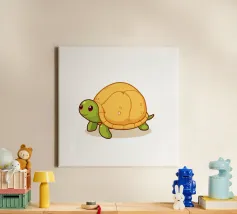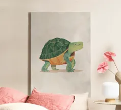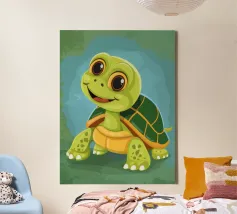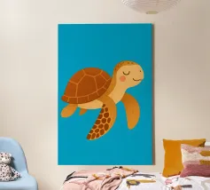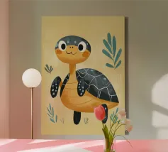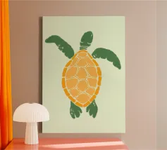 Schildkröte mit fröhlichem Gesichtsausdruck auf einem leuchtend gelben Kunstwerk Leinwand