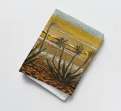 Spärliche Wüstenpflanzen stehen unter hellem Licht und Ockertönen und erinnern an Einsamkeit und Überleben.