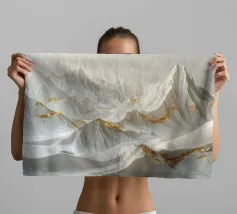 Eine markante Landschaft mit scharfen Berggipfeln und glatten Oberflächen, die ein minimalistisches Design zeigt. Die geometrischen Formen schaffen eine abstrakte Darstellung der Erhabenheit der Natur.