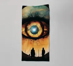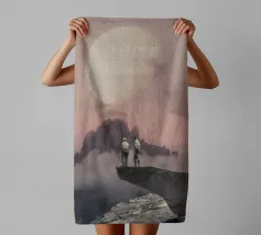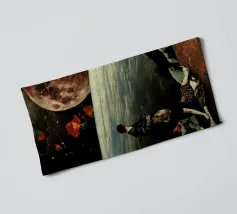 Ein kolossales, verwittertes Herz schwebt gelassen über einer weiten, zerklüfteten Landschaft, ein kraftvolles Symbol für dauerhafte Liebe in einer trostlosen Welt. Zwei kleine Figuren stehen in seiner Gegenwart und verstärken das epische Ausmaß und das filmische Gefühl dieses surrealen Kunstwerks. Mit seinen Vintage-Tönen und seiner zum Nachdenken anregenden Bildsprache ist dieses Werk ein Gesprächsanlass und eine Hommage an die große Reise der Liebe.
