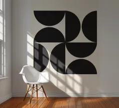 Ein minimalistisches Bauhaus-Design mit klaren, geometrischen Formen in Schwarz auf hellem Hintergrund. Die reduzierte Farbpalette und die strenge Symmetrie verleihen diesem Kunstwerk eine zeitlose Eleganz, inspiriert von der Bauhaus-Bewegung. Perfekt für Liebhaber von moderner Kunst, geometrischen Mustern und minimalistischer Wandgestaltung. Ideal als Bauhaus Poster, abstraktes Wandbild, Mid Century Modern Print, Retro Art, modernes Wohnaccessoire, Geschenkidee und stilvolle Home-Deko.