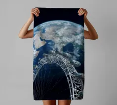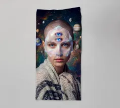 Dieses surreale Kunstwerk verbindet einen sonnenbeschienenen tropischen Strand mit einer atemberaubenden kosmischen Wendung, die einen massiven Planeten zeigt, der sich über dramatische Wüstenklippen erhebt. Ein Vintage-inspiriertes Paar steht am Ufer und blickt auf einen unmöglichen, aber traumhaften Horizont, an dem Meer, Land und Raum aufeinandertreffen. Der Kontrast von warmem Sand, türkisfarbenem Wasser und himmlischen Blautönen schafft ein beeindruckendes visuelles Gleichgewicht, das Staunen, Romantik und Eskapismus hervorruft. Dieses Wandbild eignet sich perfekt für moderne Innenräume, Kreativstudios oder Reiseliebhaber und spricht Fans von surrealen Landschaften, Retro-Ästhetik und Fantasy-Kunst an.