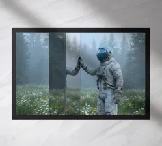 Treten Sie ein in einen kraftvollen Moment voller Kontraste und Emotionen. Astronaut of Light Holding a Butterfly in a Dark Future (Astronaut des Lichts hält einen Schmetterling in einer dunklen Zukunft) zeigt einen einsamen Weltraumforscher in einem schattigen Korridor, dessen leuchtender Helm Wärme ausstrahlt, während ein zarter Schmetterling sanft in seiner Hand ruht. Das Bild verbindet futuristische Science-Fiction mit poetischer Symbolik und steht für Hoffnung, Zerbrechlichkeit und Menschlichkeit in einer kalten technologischen Welt. Dramatische Beleuchtung, tiefe Schatten und eine minimalistische Komposition schaffen eine filmische und surreale Atmosphäre.