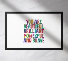 Feiern Sie Ihre Individualität mit unserem lebendigen Typografie-Kunstdruck "Be a Fruitloop in a World of Cheerios". Diese verspielte Botschaft wird in atemberaubenden, handgemalten Regenbogen-Aquarell-Schriftzügen zum Leben erweckt, die einen schönen Kontrast zu einem strahlend weißen Hintergrund bilden. Dieses fröhliche Design eignet sich perfekt für Kinderzimmer, Kindergärten oder jeden anderen Raum, der einen Spritzer Farbe und Positivität braucht, und ermutigt dazu, Einzigartigkeit zu akzeptieren. Der skurrile, künstlerische Stil spricht Kinder und Erwachsene gleichermaßen an und macht es zu einer vielseitigen Ergänzung für jedes Zuhause. Lassen Sie diesen inspirierenden Druck Ihren Raum erhellen und Zuversicht verbreiten!