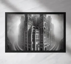 Ein verschlungenes, verlassenes Gebäude mit verschnörkelten Bögen und labyrinthartigen Schichten mit verfallenden Texturen unter diffusem Tageslicht. Das symmetrische Design und die verwitterten Details erwecken in dieser surrealen architektonischen Umgebung Geheimnisse und historische Tiefe.