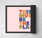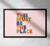 Ein mutiger und nostalgischer typografischer Druck mit "This Must Be The Place" in klobigen Retro-Buchstaben. Perfekt, um mit seiner warmen, optimistischen und Vintage-Ästhetik einen gemütlichen, einladenden Touch in jedes Zuhause zu bringen. Ein farbenfrohes Statement, das jeden Raum aufhellt, ideal für Liebhaber von Retro-Schriften und Dopamin-Dekor. Von showmemars
