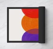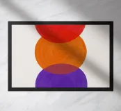 Drei Kreise, drei Farben, eine ruhige Balance: Dieses moderne Poster zeigt eine vertikale Komposition aus übereinanderliegenden, transparenten Farbflächen in Rot, Orange und Violett. Die sanften Überlappungen erzeugen Tiefe und Harmonie – ideal für moderne Interiors, kreative Arbeitsräume oder minimalistische Kunstwände mit Farbakzent.