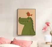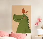 Bringen Sie Freude und Charme in jedes Kinderzimmer mit dieser bezaubernden Illustration von Krokodil und Vogel. Dieses Poster ist in einem minimalistischen, modernen Stil mit sanften Farben und verspielten Details gestaltet und bringt Wärme, Glück und Kreativität in Ihr Zuhause. Perfekt für Kinderzimmer, Babygeschenke oder für alle, die fröhliche Tierkunst lieben.