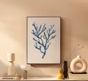 Dieses bezaubernde Aquarell zeigt eine zarte, sich verzweigende Korallenformation, die in verschiedenen Blautönen mit subtilen Verwaschungen und organischen Formen vor einem strahlend weißen Hintergrund dargestellt ist. Das Bild erinnert an die komplizierte und ruhige Schönheit eines Unterwasserriffs und bringt einen Hauch von natürlicher Kunstfertigkeit und cooler Küstenatmosphäre in jeden Raum. Perfekt für modernes und minimalistisches Dekor mit Meeresmotiven. Dieses digitale Kunstwerk wurde mit außergewöhnlicher Präzision bei 7000x5000 Pixeln und 300 dpi erstellt und garantiert eine hochwertige, beeindruckende visuelle Aussage.