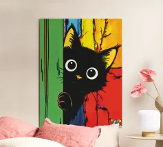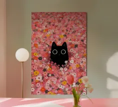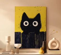 A quiet moment of wonder captured in motion. Chasing Light portrays a small black kitten suspended between earth and sky, reaching toward a fleeting blue butterfly. Set against a warm, golden background, the scene evokes innocence, curiosity, and the universal desire to touch something just beyond reach. The textured brushwork and gentle contrast between dark fur and radiant light create a sense of softness and emotional warmth. This artwork balances playfulness with poetic stillness, making it a charming yet thoughtful piece that invites reflection and joy.