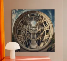 Sphere 063 - Surreal Circular Architecture With Statue Alu-Dibond