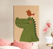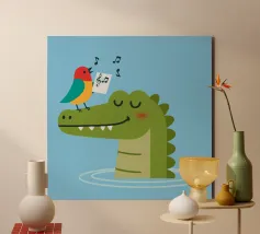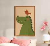 Bring joy and charm to any nursery or kids' room with this adorable crocodile and bird illustration. Designed in a minimalist, modern style with soft colors and playful details, this poster adds warmth, happiness, and creativity to your home décor. Perfect for children’s spaces, baby gifts, or anyone who loves cheerful animal art.