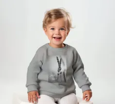 Unsere Baby Sweatshirts bestehen aus 85 % Bio-Baumwolle und 15 % recyceltem Polyester.