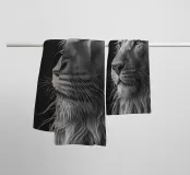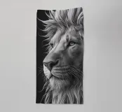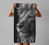 Dieses eindrucksvolle Schwarz-Weiß-Porträt eines majestätischen Löwen zeigt die beeindruckende Mähne und die kraftvolle Schnautze in detailreicher Nahaufnahme. Die minimalistische Komposition und die feine Fellstruktur unterstreichen die natürliche Schönheit und Stärke dieses wildlebenden Tieres.