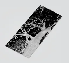 Ein wunderschön detaillierter Baum mit verschlungenen Ästen, die von schimmernden Lichtern beleuchtet werden und einen bezaubernden Effekt vor einem tiefschwarzen Hintergrund erzeugen - perfekt, um die Ästhetik von Mobilgeräten zu verbessern.