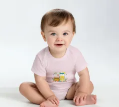 Hochwertiger und bequemer Kurzarm-Body für Babys aus 100% zertifizierter Bio-Baumwolle.